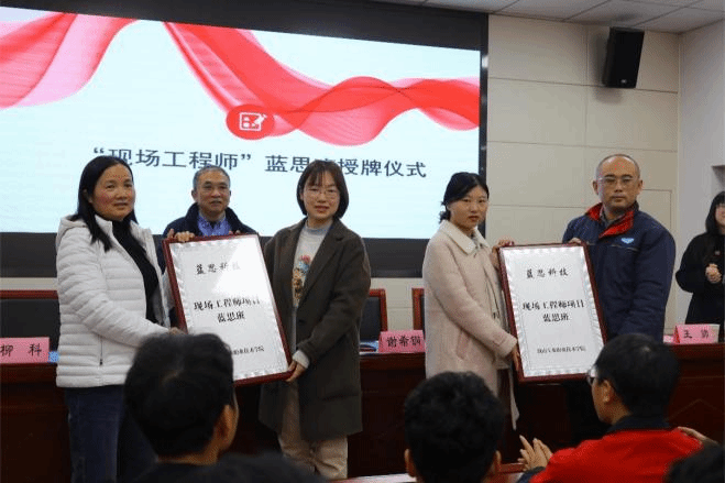 随后隋明代表蓝思科技为“现场工程师”蓝思班举行授牌仪式,并为录取新生发放“现场工程师”班录取通知书。