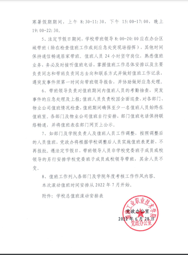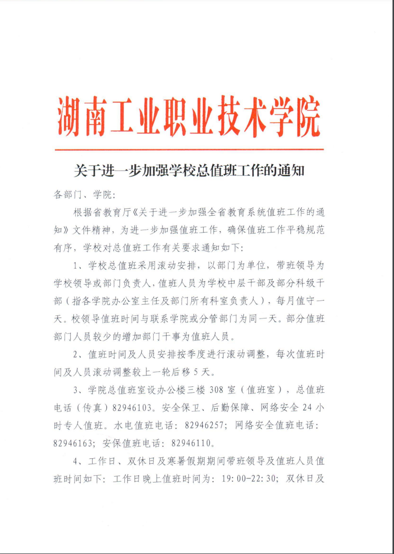 关于进一步加强学校总值班工作的通知