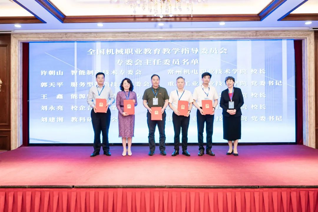 会议活动现场进行了专委会主任委员聘书颁发仪式,我校党委书记刘建湘受聘为教科研专委会主任委员,我校副校长李强受聘基础制造技术专业指导委员会副主任委员,楚怡职教研究与学报编辑部主任周哲民受聘教科研专门工作委员会秘书长,机械工程学院院长宁朝阳受聘智能制造技术专业指导委员会委员、科技处处长易杰受聘工程材料技术专业指导委员会委员、教务处处长张宇驰受聘自动化技术专业指导委员会委员、电气工程学院副院长何其文受聘机电工程技术专业指导委员会委员、对外合作交流处副处长黎永祥受聘校企合作专门工作委员会委员、机械工程学院教师熊志林受聘服务型制造技术专业指导委员会委员。