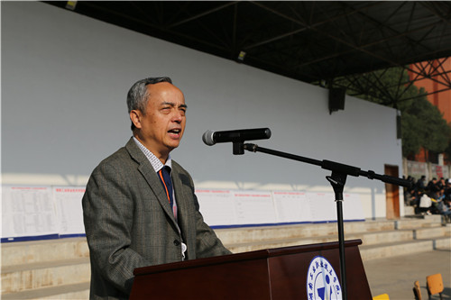 庄严的升旗仪式结束后,校长向罗生致开幕词。他代表全校师生员工,对本次运动会的顺利举行表示热烈祝贺,向为筹备本次运动会付出辛勤劳动的工作人员表示衷心感谢,并预祝本次运动会取得圆满成功。他指出,学校在追求卓越、争创一流愿景的引领下,积极响应党的号召,贯彻落实党的教育方针,促进了校园体育艺术活动的蓬勃发展。他希望学校以运动会为契机,营造体育发展的良好氛围,引导师生员工弘扬“超越自我,敢为人先,追求卓越”的奋斗精神,努力完成“卓越院校”的创建目标。