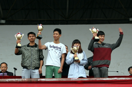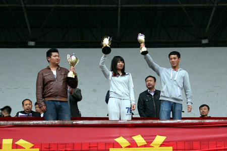学院副院长陈超宣布竞赛成绩和优秀组织奖评选结果:学生组优秀方阵队有经济管理系、电气工程系、商贸旅游系和现代设计艺术系,优秀组织奖由机械工程系、汽车工程学院、信息工程系、经济管理系夺得,团体总分冠亚季军分别是经济管理系、机械工程系、现代设计艺术系;教职工比赛优秀组织奖由机关一分工会、电气工程系分工会、现代设计艺术系分工会、商贸旅游系分工会获得,团体总分冠、亚、季军分别是机械工程系分工会、经济管理系分工会和汽车工程学院分工会。出席领导为获奖团体进行了颁奖。