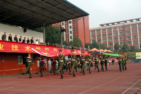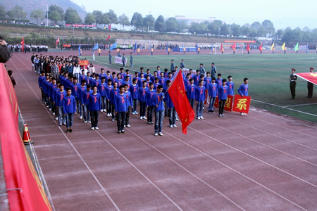 伴随着运动员进行曲,我院国旗礼仪队、院学生会代表队、彩旗方阵队、教职工代表队、裁判员代表队等27个代表队依次进入会场。他们精神抖擞、意气风发,踏着铿锵有力的步伐,喊着高亢嘹亮的口号,充分展示了我院师生昂扬向上的精神面貌。
