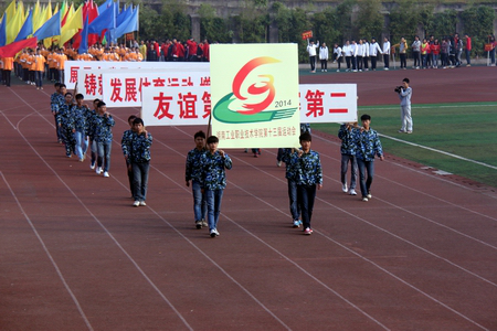 庄严的升旗仪式之后,学院副院长陈超致开幕词。他向第十三届校运会的举行表示热烈祝贺,向参加运动会的裁判员、运动员致以美好的祝福,向筹备这次运动会的全体工作人员表示衷心的感谢,并指出,校园体育运动会的召开,能增强学生的运动意识,凝聚师生智慧和力量,他希望全体运动员本着“友谊第一,比赛第二”原则,赛出友谊,赛出成绩,赛出风格。