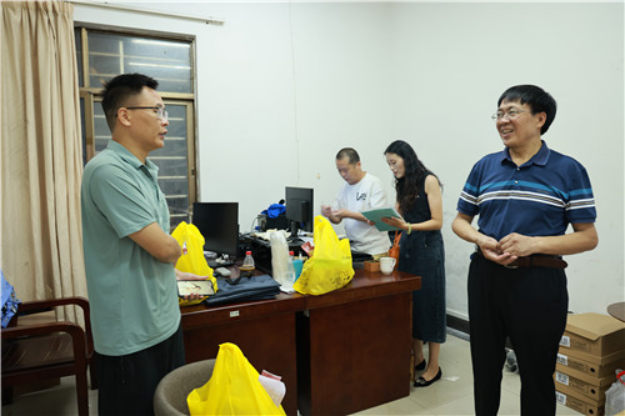 8月16日,我校开展为一线教职员工“送清凉”活动,党委委员、副校长侯新华一行看望工作在一线的教职员工,亲切慰问他们的工作生活情况,送上防暑降温用品。
