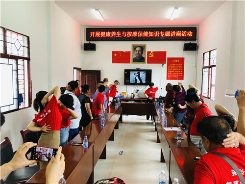 21日上午,离退休四支部书记潘亚非用通俗易懂的语言,从养生保健概念、合理起居饮食、老年人多发病等几个方面进行了宣讲。潘亚非现场演示《三焦操》按摩手法,帮助村民掌握科学的中医养生保健知识,养成健康的生活方式。