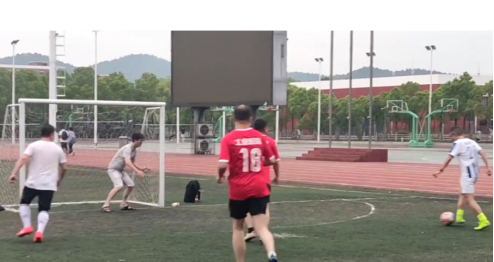 随后,党政联队和教学联队联手为现场的观众奉献了一场进球大战。党政联队毫无悬念取得了胜利。