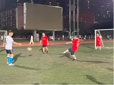 2023年10月16日下午18点,第十一届“湖南工院杯”教职工足球赛第五轮比赛在学校运动场进行。
