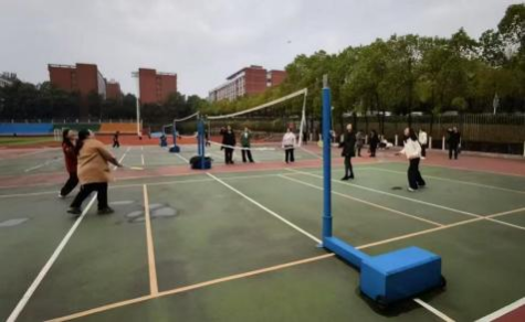 合影完,女教职工们来到操场舒展身心,唤醒春日活力。随 着白色羽球划破长空,一场“ 以球会友,以赛连心 ”的友谊赛在 羽毛球场馆激情上演。大家精神饱满,热情高涨,纷纷挥拍上阵。 默契在球场上持续升温,胜负皆化作全场沸腾。她们飒爽、坚韧、 细腻、团结,展现了我院女教职工自信昂昂、活力满满的风姿。