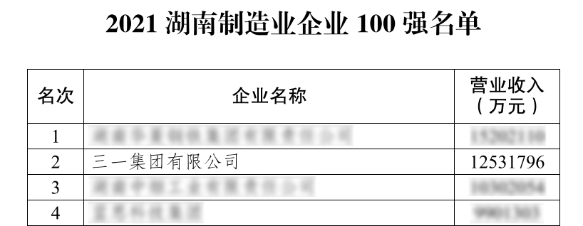 12月14日,湖南省工信厅、省企业和工业经济联合会发布2021湖南企业100强和制造业企业100强名单,三一集团高位上榜,分别位居第三、第二。