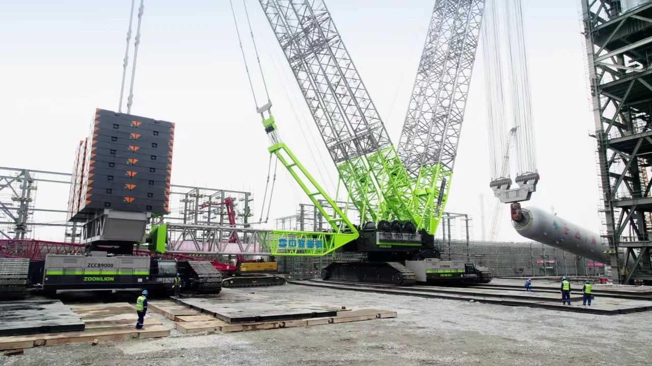 此外,荣膺“2024中国工程机械年度产品TOP50”技术创新金奖的中联重科ZCC89000履带起重机,是全球首台能满足石化3000吨级以上浆态床吊装的履带起重机。其创新了“双履带车+并联双臂架”整机结构方案,首创了并联双桁架臂结构和大型履带起重机多模式智能行走、三级平衡结构环轨复合回转支撑等多项关键技术,彻底解决了3000吨级以上超大吨位履带起重机回转支撑难题。