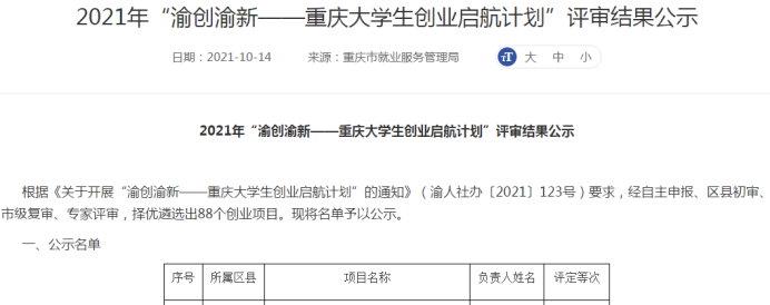 近日,重庆市人力资源和社会保障局公布了《“渝创渝新——重庆大学生创业启航计划”评审结果公示》信息,其中,我校创新创业中心入驻项目“解忧の校园美甲店”成功入选,获得三等奖。