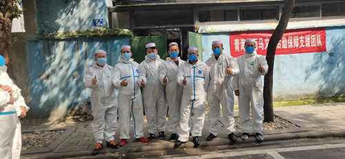 马海青和他的后勤保障支援团队还报名参加了雷神山医院志愿者服务工作,除了义务为一线医护人员和隔离病人送餐,在人手紧缺的时候,他们又立即变身为搬运工人,不辞辛劳、加班加点将各地送来的一批批应急物资分发到医护人员手中。