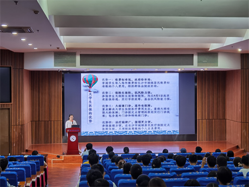 后勤处负责大学生医保工作的赵文雪老师从大学生基本医疗保险简介、大学生基本医疗保险的优势、收费标准、参保具体流程、参保学生就诊报销须知、大学生基本医疗保险与“学平险”的区别和关系等六个方面对大学生基本医疗保险相关政策进行了深入浅出的宣讲。赵文雪结合自身工作经验,重点讲解了学生们最关心的报销范围、报销额度等问题,并通过真实案例说明参加大学生基本医疗保险的重要性。