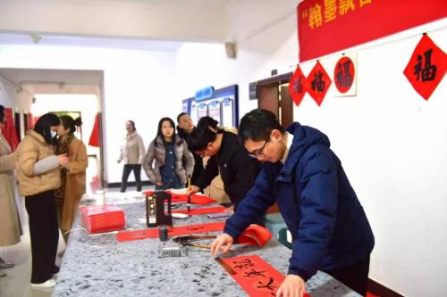 “还是手写的春联最有年味,家里老人格外喜欢!”“以往我家贴的春联都是去街上买,前段时间后勤同志们在教职工群里为大家提供了几百幅春联内容供挑选,我赶紧接龙选上几副,这个活动真是温暖又贴心。”“不仅可以自己挑还可以自己写,很有年味,可以年年办”。活动现场,教职工们活动参与的热情高涨,有书法爱好者们更是直接上手,现场体验书写春联,感受传统书法文化。