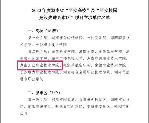 本网讯 2020年度湖南省“平安高校”建设立项单位名单近日出炉,我校获批“平安高校”建设第二轮立项单位。