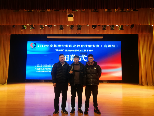 本网讯 12月5日至8日,2019年度全国机械行业职业教育技能大赛(高职组)“辰榜杯”数控多轴联动加工技术赛项在青岛举行。我校机械工程学院数控专业冯广、熊柯组成的参赛队与来自全国26支代表队的52名选手同场竞技,最终斩获一等奖。欧阳陵江、陈志坚获得“优秀指导老师”称号。