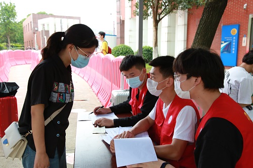 “请大家根据指引排队体温测量。”“学姐我们来帮你搬行李。”校园里四处可见志愿者们忙碌的身影。他们协作工作人员开展体温检测与信息登记工作,帮助毕业生搬运行李。“我希望能够尽自己的力量帮助到更多的人,将工院互帮互助的传统延续下去。大一刚进校园时,当时大二、大三的学长学姐做志愿者给予我们帮助,现在学姐学长们毕业了理应由我们来做志愿者帮助他们。”我校检测2018-1班的陈振超得知学校招志愿者的消息后,立马报了名。连续三天,他坚守在岗位一线。