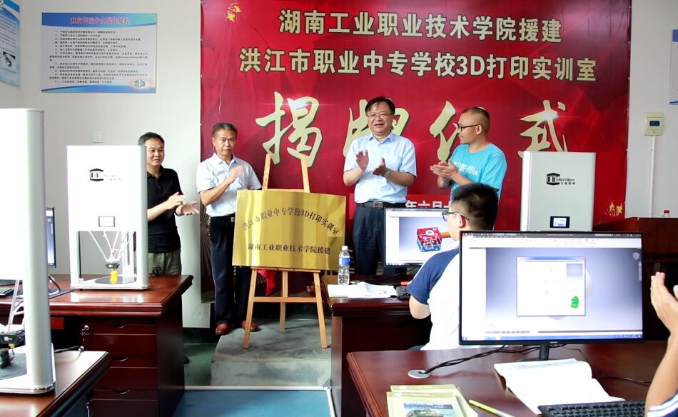 “洪江市职业中专学校3D打印实训室”揭牌仪式现场