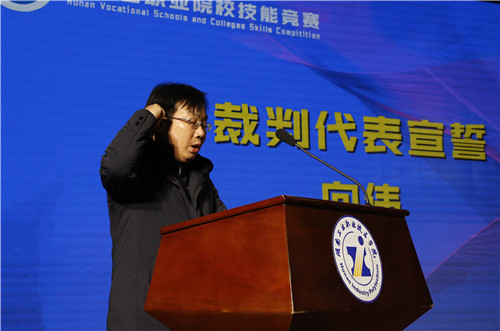 余伟良介绍,湖南省已连续14年举办全省职业院校技能竞赛,优质的省赛助推湖南省取得了优异的国赛成绩。近年来,我省始终坚持以赛促教、以赛促学、以赛促建、以赛促改,大力弘扬劳动光荣、技能宝贵、创造伟大的时代风尚,推动形成“人人皆可成才、人人尽展其才”的良好局面,推动全社会更加了解、支持和参与职业教育。他指出,湖南省正在全面深入贯彻习近平总书记的重要讲话精神,推动“三高四新”战略落地落实,比以往任何时候都更迫切需要高素质技能人才。在新时代,我们更应当奋发有为:在宏观层面,要努力把中央决策部署转换成职业教育的生动实践,全力推进职业教育高质量发展;在评价层面,要优化职业教育评价方式,发挥好“指挥棒”作用;在教学层面,要探索职业教育发展规律,做好制度设计,加强“三教”改革;在竞赛层面,要不断健全以政府主导、行业指导、院校参与的竞赛制度,弘扬精益求精、追求卓越的工匠精神,为能工巧匠、大国工匠孕育成长提供良好平台。