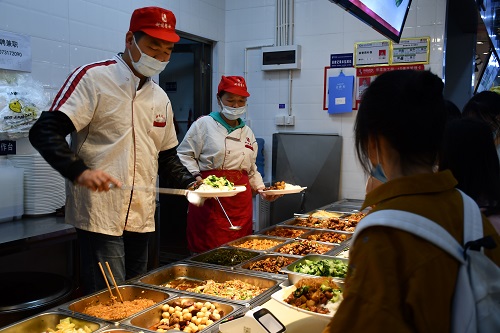 考试结束后,考生们进入食堂就餐,食堂里丰富的美食,让他们大饱口福。“同学,想吃什么菜?”“这些都是新鲜出炉的菜,很好吃。”……现场,阿姨们热情服务,打菜分量十足,让考生们心中暖暖的。