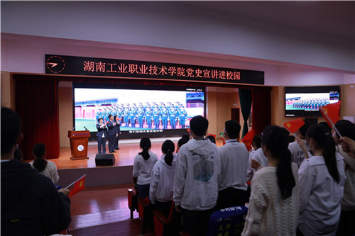 “党史是教科书,也是营养剂。希望大家能从党的光辉历史中汲取智慧力量,鼓起迈进新征程、奋进新时代的精气神,以‘百年恰是风华正茂’的自我激励,在三湘大地上书写新的篇章。”党课最后,杨颖鼓励现场师生坚定信念,全力以赴,为实现中华民族伟大复兴的中国梦而不懈奋斗。