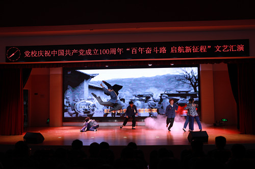 本网讯 百年征程波澜壮阔,百年初心历久弥坚。为隆重庆祝中国共产党成立100周年,回望百年历史,追忆奋斗历程中的革命先辈事迹。4月27日晚,党校庆祝中国共产党成立100周年“百年奋斗路 启航新征程”文艺汇演在大学生活动中心顺利举行。