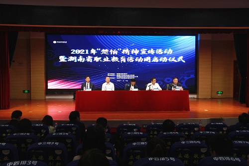 本网讯 5月22日,2021年楚怡精神宣传活动暨湖南省职业教育活动周启动仪式在我校举行。启动仪式由湖南省教育厅主办,我校、湖南教育报刊集团有限公司承办,长沙市芙蓉区楚怡学校协办。省教育厅副厅长王仁祥,省教育厅职业教育与成人教育处处长崔书芳,湖南出版投资控股集团党委委员、副总经理、湖南教育报刊集团党委书记、董事长、中国教育报刊社湖南记者站站长熊名辉,我校党委书记刘建湘,我校党委副书记、校长向罗生,长沙市芙蓉区楚怡学校校长段成姬,楚怡工业学校校友代表等参加启动仪式。启动仪式由崔书芳主持。