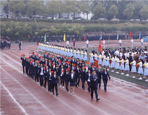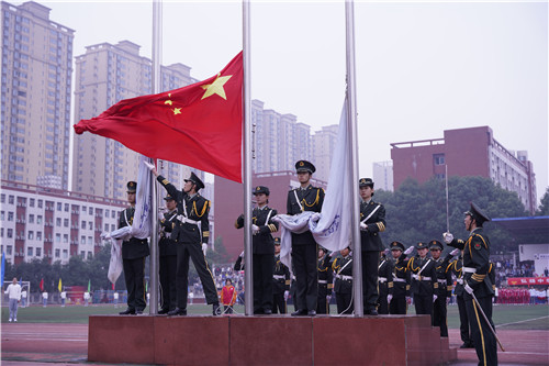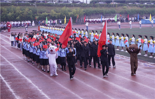 在雄壮欢快的《运动员进行曲》声中,国旗礼仪队、彩旗方阵、会徽方阵、裁判员方阵、高水平运动队方阵、各二级学院代表方阵、各分工会教职工方阵依次出场。他们迎着秋日暖阳,迈着矫健的步伐,喊着响亮的口号,展现了我校师生昂扬向上的精神风貌。