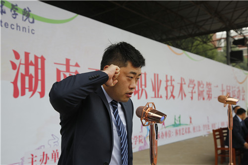 随后,电气工程学院工网2019-3班宋嘉慧代表运动员宣誓,体育艺术部老师侯勇代表裁判员宣誓。