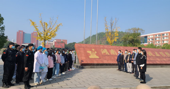 本网讯 为贯彻落实湖南省教育厅和岳麓区疫情防控指挥部相关要求,进一步提高我校新冠肺炎疫情应急处置能力,11月19日上午,学校新冠疫情防控工作领导小组办公室组织开展了新冠肺炎疫情防控应急演练。学校新冠肺炎疫情防控工作领导小组常务副组长、副校长张志勇到演练现场指导工作。后勤处、党政办、保卫处、学工处、财务处等部门负责人、工作人员及部分学生代表参加演练。