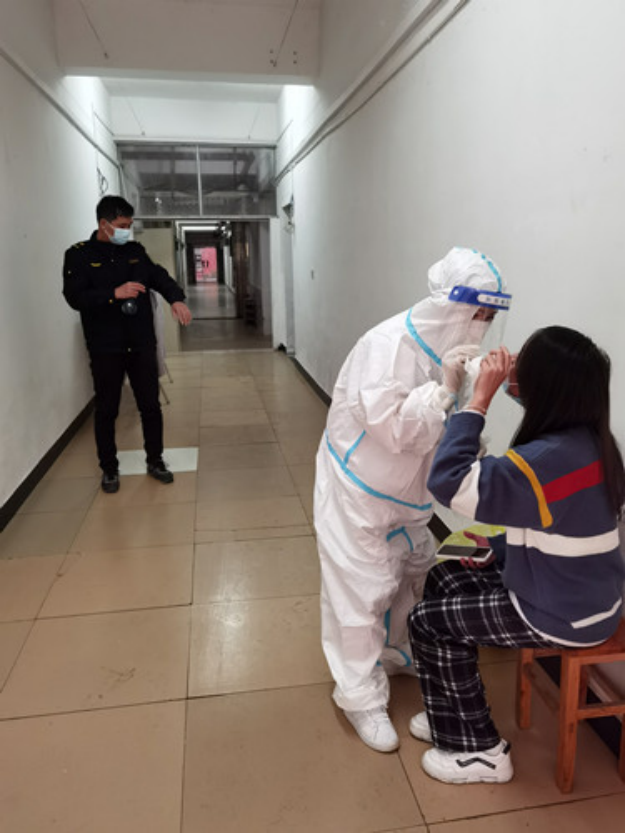 本次演练分为学生入校健康检测演练、学生在寝室出现异常情况演练、校医务室接诊发热病例演练等三个环节。在学生入校健康检测演练过程中,设置了发现“体温异常者”“红码人员”“黄码人员”等异常情况。现场工作人员调查核实相关情况后,第一时间报告学校防控办并启动异常情况处置流程,及时完成上报属地管理部门、人员转送隔离、消杀等工作。学生在寝室出现异常情况演练环节模拟了学生因涉疫相关情况需进行居家隔离的处置过程,从安排学生单独入住校内预留的健康监测寝室、联系人员上门完成核酸检测、到做好学生居家隔离期间的生活保障及健康监测,每一个环节都需要学校相关部门的工作人员密切配合。校医务室接诊发热病例演练环节,重点演练了询问旅居史情况并及时将学生转诊到发热门诊的过程。演练过程中,各部门分工明确,协调配合,严谨高效。
