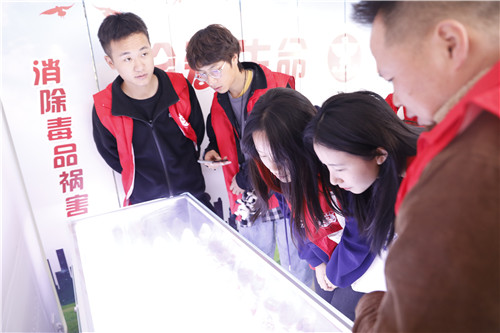 志愿者在当地开展禁毒宣传及相关主题问卷调查