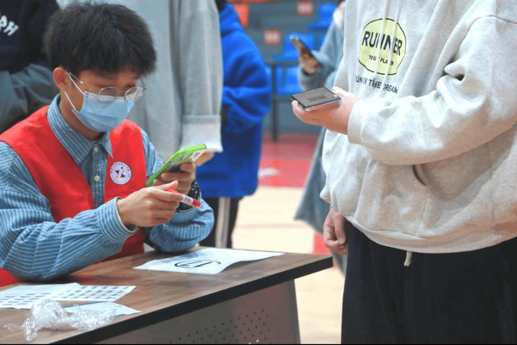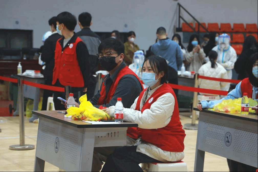 志愿者积极投身学校全员核酸检测现场