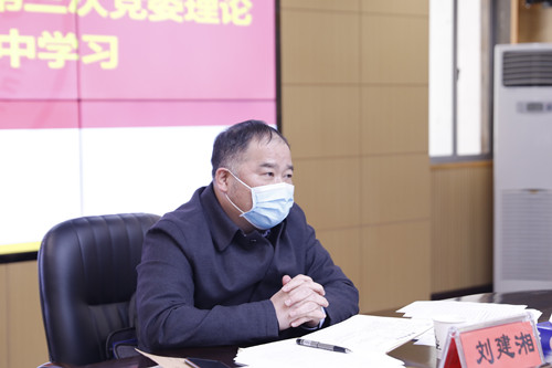 刘建湘在总结讲话中提出要求,一是抓实理论学习,党员领导干部要把理论学习当成一种习惯和自觉,先学一步、深学一层,营造一级带一级的良好学习氛围,不断用党的创新理论指导实际工作;二是做新时代的“好干部”,广大干部要牢记习近平总书记关爱和嘱托,在坚定信念上常修常炼、常悟常进,在拒腐防变上层层设防、处处设防,在政绩观上守牢初心、不出偏差,在干事创业上真出业绩、出真业绩,在本领提升上虚心用心、加强磨练,在担当和斗争上无私无畏、服务大局,在贯彻群众路线上改进方法、提高水平,在奋进新征程、建功新时代中彰显担当作为;三是常态长效推进党史学习教育,在“常”和“长”字上下功夫,把党史学习融入党员干部学习教育的日常,体现在干事创业的平常;四是抓好重点工作的落实,在学校“双高校”建设、“楚怡行动计划”的实施、疫情防控、意识形态等重点工作方面狠抓落实,确保校园安全稳定并圆满完成各项工作任务。