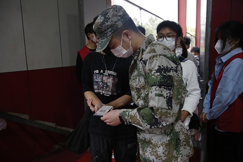 “同学们,请提前打开微信,扫场所码。”“请大家保持间隔距离,有序接受采样。”在学校核酸检测采样点,虎贲团成员协助现场工作人员维持现场秩序,他们细致、耐心的服务,收获了师生的点赞与好评。