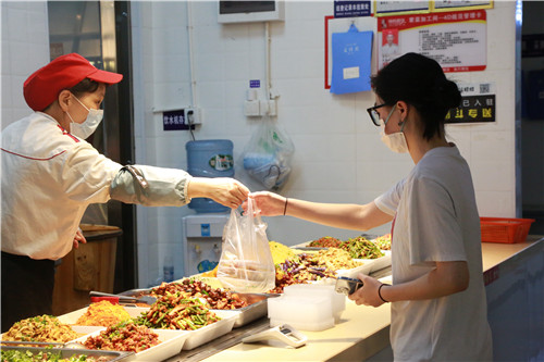 铃声响起,考生们在严谨有序的考试氛围中,争分夺秒、奋笔疾书,仔细认真答题。中午,考生们纷纷进入食堂就餐,食堂工作人员早已准备就绪,“同学,想吃什么菜,刚刚出炉。”“这里吃还是打包?”……考生们表示,食堂阿姨非常热情,饭菜打得很瓷实,让人感到温暖。