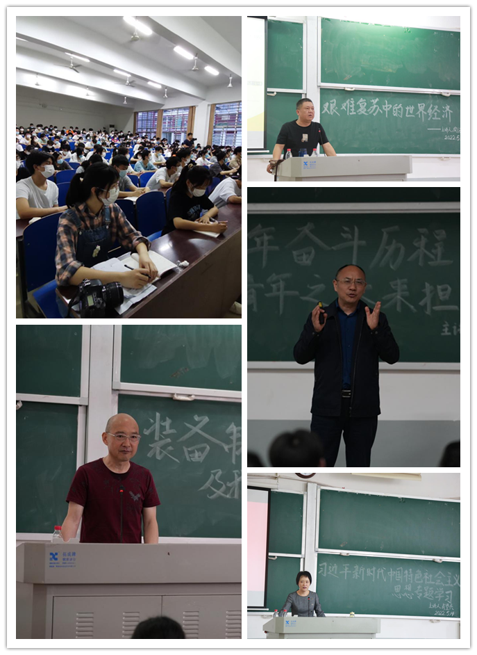 我校纪检监察处副处长涂岭主讲题为《全面从严治党专题学习》的专题党课。他勉励学员们要积极主动学习党纪法规,树牢红线意识、底线思维,用中国共产党党员的标准严格要求自己。我校教务处处长彭跃湘主讲题为《装备制造业的发展及我院的教学改革》的专题党课。他讲解了湖南“强省会”战略,使学员们更详细地了解装备制造业发展,增强了他们爱党爱国爱校意识。我校马克思主义学院党总支部书记肖望兵主讲题为《习近平新时代中国特色社会主义思想专题学习》的专题党课。她从“丰功伟绩 恢弘史诗”、“精神血脉 代代相传”、“以史为鉴 开创未来”三个方面深入讲解了习近平新时代中国特色社会主义思想蕴藏的深刻内涵。我校马克思主义学院教师徐雷主讲题为《心心念念 守护好我们的价值观》的专题党课。他向学员们讲述了建国后青年价值观的演进与发展,要求同学们在实践中践行社会主义核心价值观。我校马克思主义学院教师向洪主讲题为《艰难复苏中的世界经济》的专题党课。他从世界经济崎岖不平的复苏之路、影响复苏的多重因素、促进复苏的中国动力等三个方面进行了讲授。
