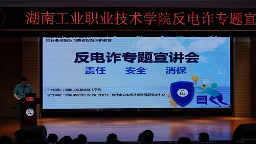 岳麓公安分局反电诈中心警官吴谢彦彦在讲座中介绍了刷单返利类、杀猪盘类、冒充物流客服类、贷款代办信用卡类四种电信诈骗类型,并就如何有效防范电信诈骗展开详细讲解。建行长沙河西支行职员张宇鑫从个人金融信息防护、防范银行卡盗刷、防范虚假金融广告三个方面讲解了金融安全知识。