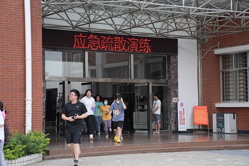 讲座结束后,学校在1、2教学楼、汽车楼和机械楼开展了应急疏散演练。