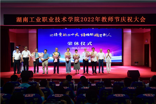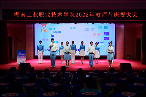 刘建湘代表学校党委向努力奋战在各个岗位上的全体教职工,向为学校改革发展事业作出贡献的离退休老同志们致以崇高的敬意和衷心的感谢。他动情地说道,一个人遇到好老师是人生的幸运,一个学校拥有好老师是学校的光荣,一个民族源源不断涌现出一批又一批好老师则是民族的希望。希望全体老师要始终站在传播真理至高点,做好学生的“引路人”;要始终站在立德树人第一线,做好学生的“筑梦者”;要始终站在涵养师德最前沿,做好学生的“大先生”。他指出,当前学校正处于前所未有的重要战略机遇期,每一名教职员工都应当以舍我其谁的勇气和以久久为功的毅力,齐心协力、砥砺前行,在推动“双高”建设上再创佳绩,在服务“三高四新”和“强省会”战略上再立新功,为现代化新湖南建设做出新的更大贡献,以优异成绩向党的二十大献礼。