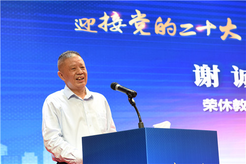 荣休教师代表谢诚诺金句频出,既有笑点也有泪点,“我梦想着有一天,年轻人心目中的明星是网红教师。”“37个春秋,能站在讲台上,享受和青年朋友交流思想、传播观念,那感觉爽歪歪。”