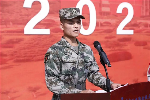 教官代表谭玉彬郑重宣誓,将严格遵守军训的有关规定和学校管理规定;时刻保持良好的教官姿态,做到言传身教;严格按照军训计划科学施训,灵活组训、文明军训。