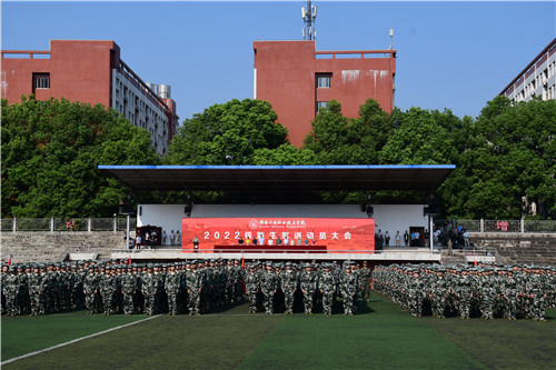 本网讯 9月17日上午,我校2022级新生军训动员大会在田径场举行。校党委委员、副校长成涛,学校保卫部、学生工作部、校团委相关负责人,各二级学院党总支书记,军训团团长黄挺,新生辅导员和班主任、全体军训教官以及2022级全体新生参加此次军训动员大会。大会由保卫部、武装部部长彭伟主持。