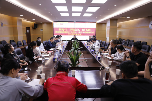 本网讯 10月18日下午,“书记有约”走进体育艺术部,在行政楼二会议室召开“新时代、新起点、新飞跃,贯彻落实党的二十大精神,推进学校体育艺术工作高质量发展”主题座谈会。学校党委书记刘建湘与体育艺术部全体教师面对面,就体育艺术教育工作高质量发展进行交流。