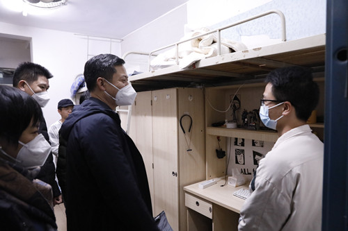 “你是哪里人?”“买好回家的车票了吗?”“四六级考试准备得怎么样了?”向罗生一行实地走访了各学生宿舍楼,与暂未返乡的同学们亲切交流,了解学生近期上网课、生活和思想yabocom(中国)官方网站,教育引导学生返乡全程做好个人防护,遇到困难要第一时间向学校反映。在走访过程中,向罗生一行还注意查看了各学生宿舍卫生整洁和用电安全情况,叮嘱同学们“安全无小事”,一定要注意室内通风透气和用电安全。