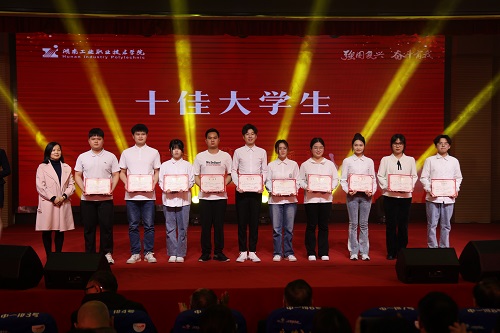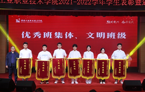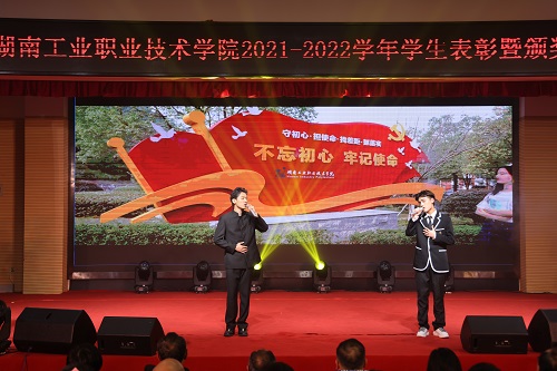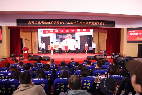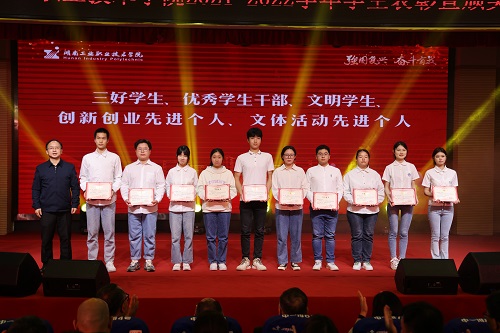 会上宣读了《关于表彰学校2021-2022学年“十佳大学生”、“优秀班集体”等先进个人、优秀集体的决定》《关于表彰2022年上学期学校奖学金、创新创业奖学金和技能竞赛奖学金获得者的决定》《关于表彰2021-2022学年国家励志奖学金获得者的决定》《关于对2021-2022学年国家奖学金获得者进行表彰的决定》,现场嘉宾为学生代表上台颁奖。