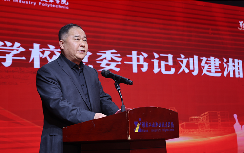 学校党委书记刘建湘表示此次大会既是表彰会,也是一堂内涵丰富的大思政课,更是工院青年学子积极响应习近平总书记的伟大号召,接过强国建设、民族复兴接力棒的集体宣誓。他希望工院青年以此次主题教育为契机,坚持不懈用习近平新时代中国特色社会主义思想武装头脑、凝心铸魂,在奋斗中激扬青春,把理想信念作为青春奋斗的“精神灯塔”,把锤炼本领作为青春奋斗的“重要基石”,把担当有为作为青春奋斗的“鲜明标识”。他结合抗战时期楚工学子的奋斗事迹、我校青年学子袁思远、田僮的故事,讲述了当代青年的责任与担当,鼓励工院青年奋发向上,不负青春韶华,为建功“三高四新”战略展现新作为,更加主动地投身实现民族复兴的伟业,努力使自己成为建设社会主义现代化强国的有用之才、栋梁之材。