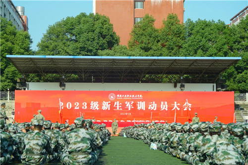 本网讯 盛夏未央,金秋登场,灼灼烈日,巍巍军风。9月17日上午,我校2023级新生军训动员大会在田径场举行。校党委委员、副校长成涛,军训团团长彭利民,学生工作部、招生就业处等相关部门负责人,各二级学院党总支书记,新生班级辅导员和班主任,全体军训教官以及2023级新生参加此次动员大会。大会由学校武装部部长彭伟主持。