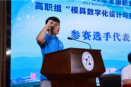 裁判员代表张超彦老师、参赛选手代表谢栋现场宣誓。