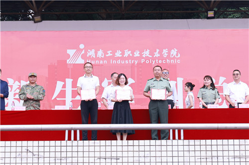 汇报表演结束之后,周梦顺宣读了《关于表彰2023级新生军训工作先进集体及先进个人的决定》,汽车工程学院、工业设计与艺术学院荣获军训先进工作单位称号,一营二连等14个连队荣获优秀连队称号,盛毅等3人荣获军训优秀教导员称号,罗啟关等20人荣获军训优秀教官称号,张平等9人荣获军训优秀跟训班主任称号,刘明耀等506名同学荣获军训优秀个人称号。校领导为获表彰的集体和个人颁奖。